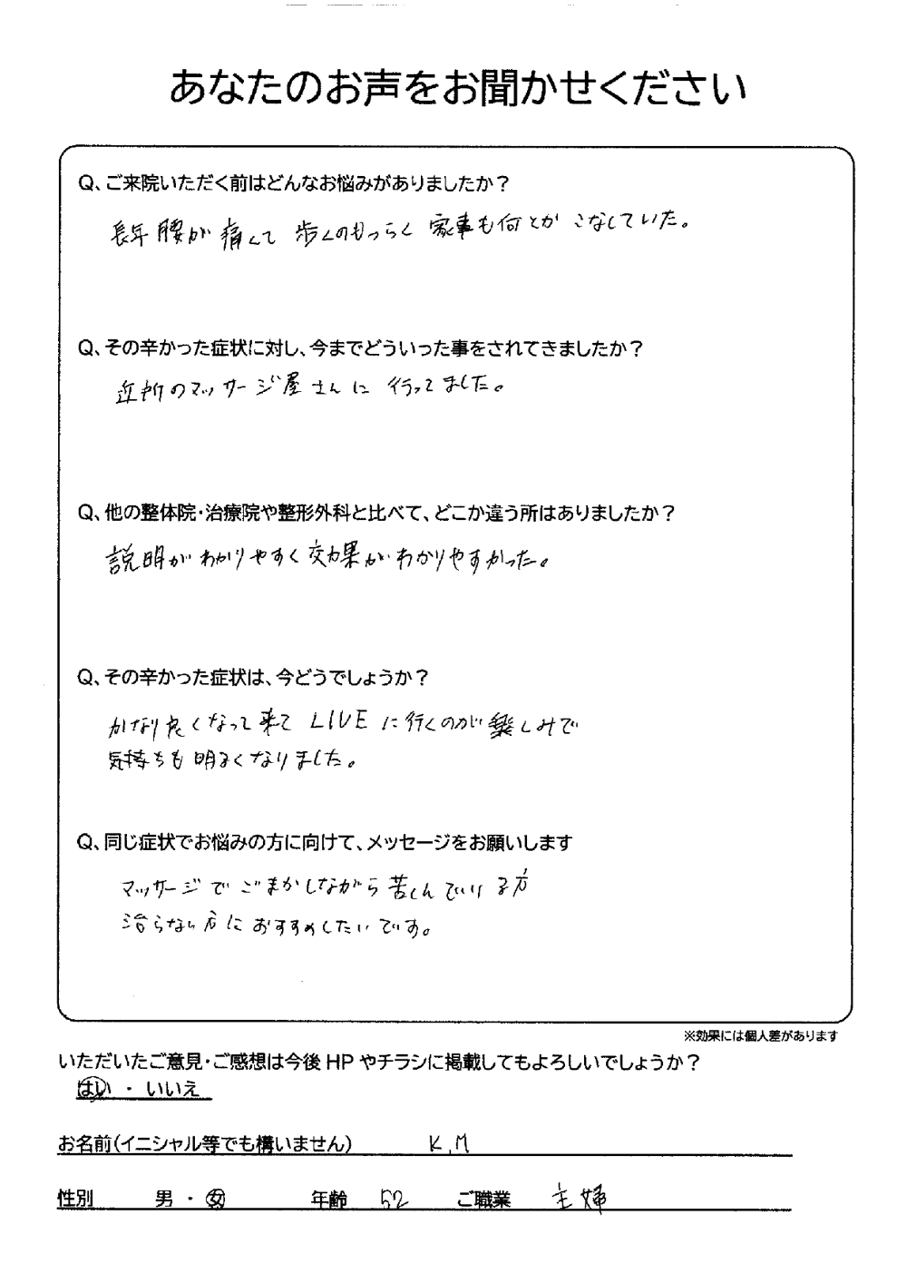 かなり良くなってきて、気持ちも明るくなりました。K.M様 52歳